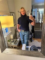I dressed this up with navy sequin joggers for xmas party at home. nice turtleneck