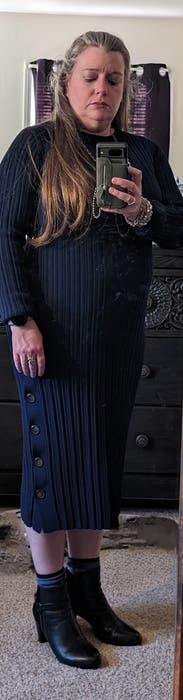 Loved this sweater dress! The buttons and sleeves are great details. Would rent again.