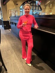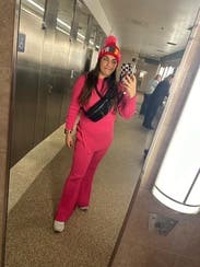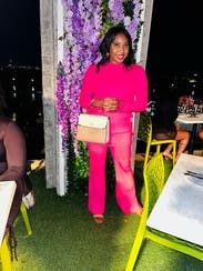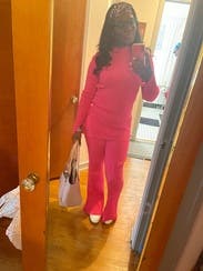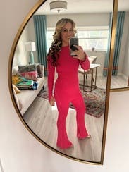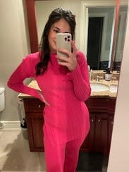 I wore this on a date night. Perfect October pink outfit. It was a little larger than expected and I could have done the XS instead of the small. I have long legs and needed to wear heals.