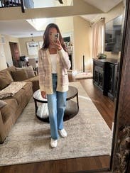 Loved layering this for spring. However, didn't realize the buttons are sparkly. Not typically my thing, so I did not purchase to keep!