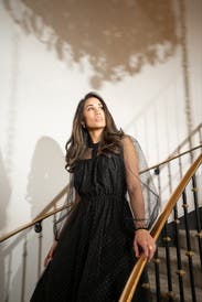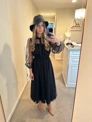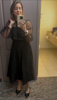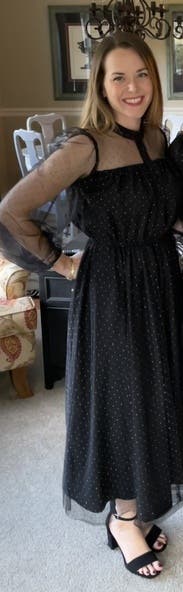 Wore for a fall wedding that I officiated. My kids told me that I looked like Wednesday but my husband thought it was elegant. It fit well; was comfy and I liked that it had sparkle.