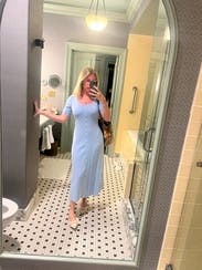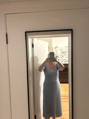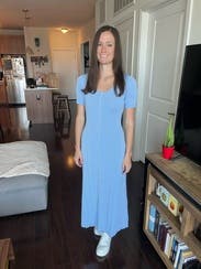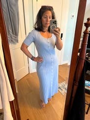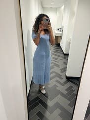 Loved this dress ! The color was even better in person and I got so many compliments. TTS and flattering. Easy to wear all day.