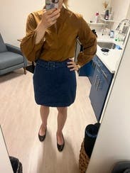 Felt fashionable in this denim suit for a business casual meeting. Skirt is quite short but was ok with tights