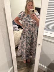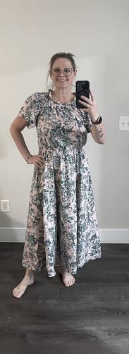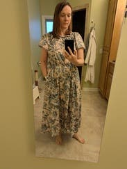 This dress is an easy throw on, I wore for work and for date night. But could easily be dressed up for a wedding or shower or something! Very forgiving with elastic waist so could potentially size down one.