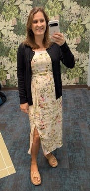 I felt so beautiful in this dress; it's very flattering and comfortable. I wore it with a cardigan to Easter Mass. I left the straps loose so it was breastfeeding friendly.