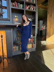 This dress is cut well and perfect for fall or winter. I found the sweatheart neck a little low.