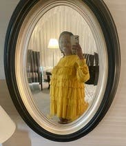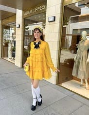 This beautiful yellow dress has a babydoll feel, but with sophistication. Very flattering and not too short. IG @bethielife
