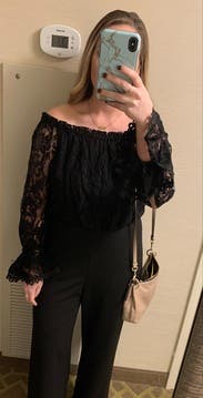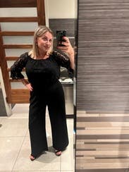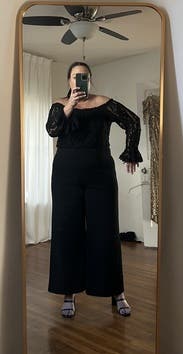 Just wore this for my company’s holiday party. I received so many compliments and no one could believe it was a jumpsuit because of the lace top. I was worried I wasn’t going to fit into my regular size (I’ve been drinking to much craft beer I guess lol) but went with my size 4 and wasn’t able to get 6 on backup so went with another designer but I didn’t need the other one this was perfect! I would absolutely recommend this!