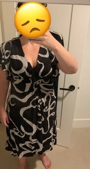 I write this wearing a sweater over my dress at work to cover my almost fully exposed bra. It is too much for any public occasion. One should own a lot of fashion tape to make this work. The waist and length is good, but I really don't know why designers can't get busts right.