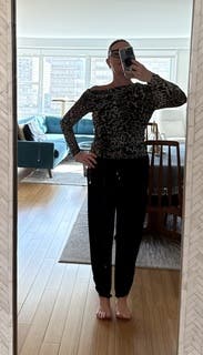 Received so many compliments! Such a fun set and you can wear each piece separately. Top was tight enough to where I didn’t really need a bra with a bigger chest. The top was a little long on me bc I’m short and have a torso but it still worked!