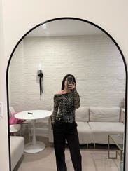 The bold leopard print makes it a standout piece, perfect for day and night looks. Pair it with your favorite jeans for a chic, casual outfit, or dress it with a sleek skirt for a night out.