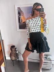 Wore this on a night out with a black mini skirt and my friends convinced me to buy the top by the end of the night! So many compliments from strangers and so easy to style!