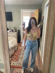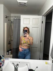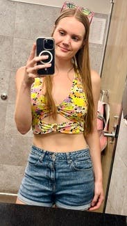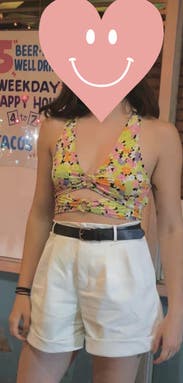 Looks so cute in theory but the material and cut makes it look and feel like a bathing suit top. Was so excited to wear but didn’t end up wearing it.