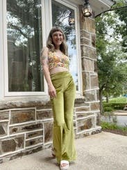 This was fun to style with wide legged trousers and sandals. The fabric is similar to workout clothing so it's comfortable in hot weather. No bra required for small chest gals.