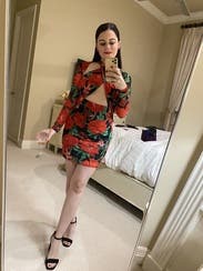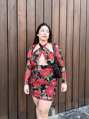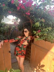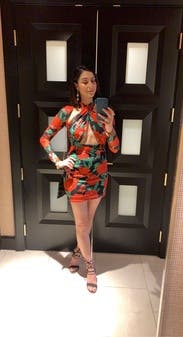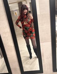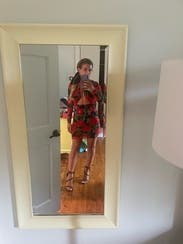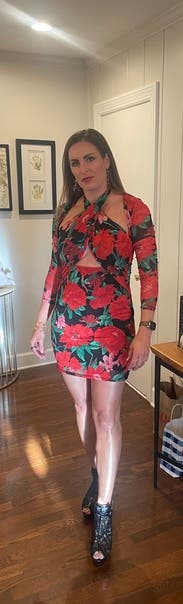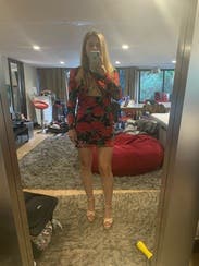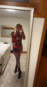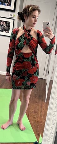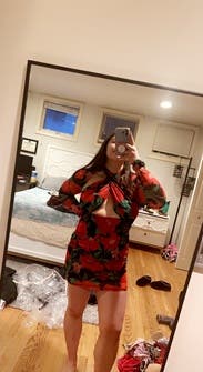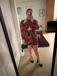 I was obsessed with this dress the minute I saw it. Loved the unique cut, the straps make it so it's adjustable, love a red rose print, made for a standout dress at a NYE party.