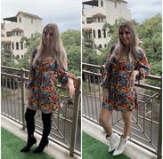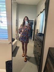 Felt amazing in this dress; wore during the day for a bachelorette in Austin. Was extremely comfortable and the pattern is fun and eye catching. I didn’t notice the side cutouts when I rented it and I loved them. Would consider buying this dress!