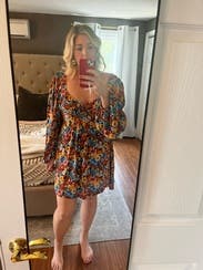 Wore this for welcome drinks for a friends wedding where the theme was *colorful*. Worked perfect and would definitely rent it again! It’s really good at hiding any bloat as well.
