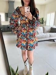 this is a perfect fall dress ! i wore it with my cowboy boots and loved how it looked. it fit perfectly for me, my waist size is 27.5 in. it was a little big for my 34B boobs and you can’t really wear a bra, so i was a little self conscious but nothing too bad.