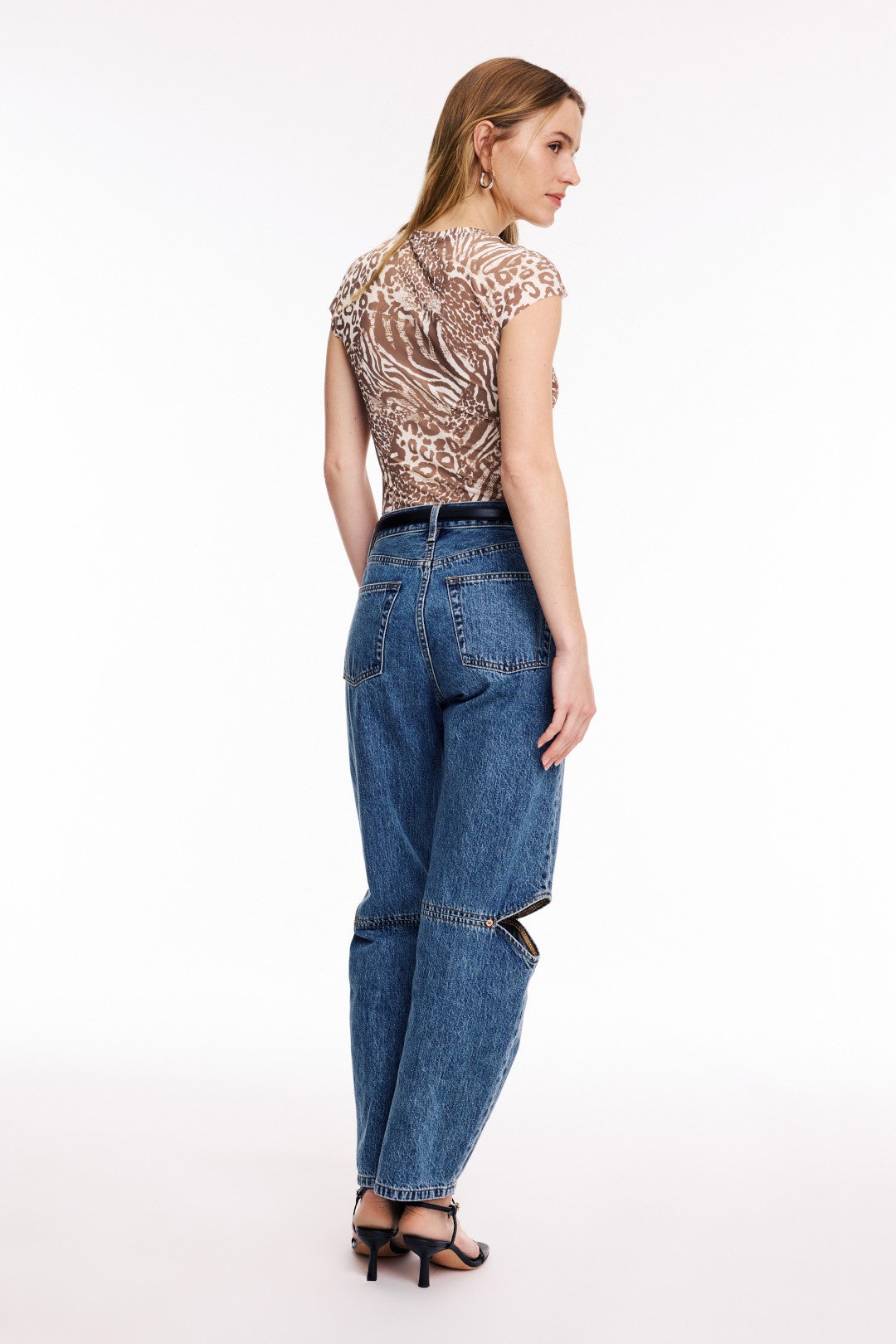 AFRM’s Nina Mesh Top brings a moody print and fitted shape that stands out. Style it with black trousers or a slip skirt for a sleek finish.