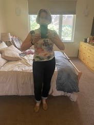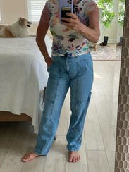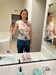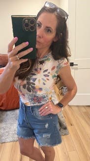 This shirt is cute, the fabric is very thin, so if you have a muffin top it will be on full display. I didn’t wear.