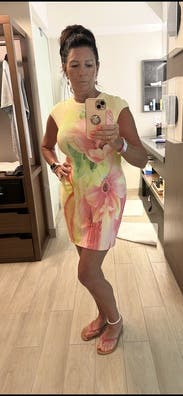 This dress was super cute and fit great on my body. It is short so be mindful if you have a booty but perfect for a cute summer event. It also has some stretch and there isn’t a zipper. Just pull over your head and go! If you’re on the fence about it this is your sign to just try it.