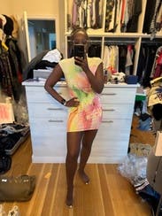 The perfect brunch outfit for the summer. Note that this is very form fitting and short!
