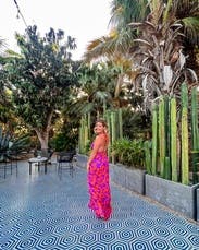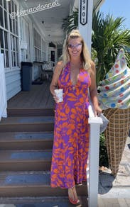 I was obsessed with this dress. I loved the low cut and halter top on my wide shoulders. The flowy bottom of the dress made me feel like a princess. And the color is worse. So vibrant and really embodied the tropical environment.