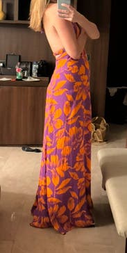 Loved the cut of this dress with the plunging neck line and deep back. It was perfect for my vacation. Wore it to a luau on the beach in Kauai and got several compliments. The colors are vibrant and you will stand out!