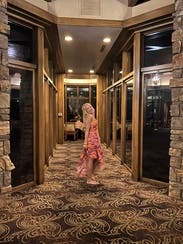 Feels light and flowy.... packs well.... great color... I loved it! I forgot to get full length shot.... but halter is cute. I would rent again.