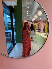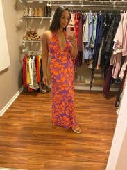 I wore this to a dinner party in Miami. I loved the cut, the color and pattern are bold and fun! It is very long, I am tall so not an issue but may be for shorter women.