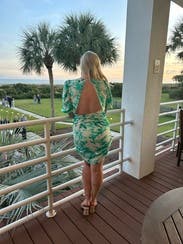 First for a rehearsal dinner and I love it so much a rented it a few months later for another wedding we had. The color and print are so fun, and the cut of the dress is great to show off your 🍑 if that’s what you’re looking for!