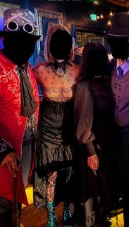 Wore for a steampunk-themed party. Sexy and also comfortable, nice and stretchy. Looks good with either a nude or black bra underneath — just gives a different vibe depending on what look you want.