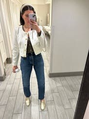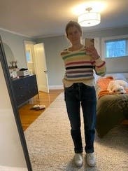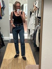 I’ve hear people rave about the 90’s pinch waist from agolde and had to try for myself. Amazing. The fit is perfect and elevates any outfit. Wore no less than 10 times during my rental period. Did stretch a bit in waist so had to wear belt. Not sure I would size down though