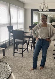 Jeans are really structured and stiff but should have gotten my true size. No need to size up on these. Length was perfect. Put on a belt and made them work but husband said they weren’t that flattering. lol.