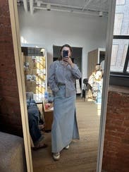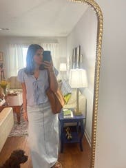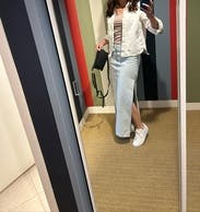 I’m 5’5 and it was maybe just a touch too long. But otherwise a side slit, light denim take on a classic.