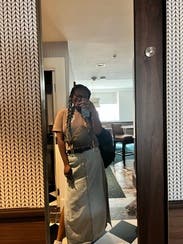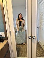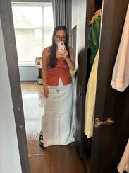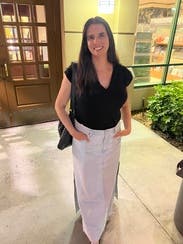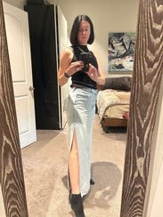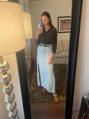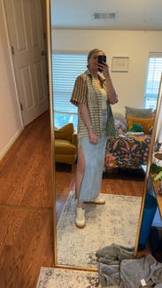 Great skirt for a girls trip to Nashville. Paired it with cowboy boots a night out and white sneakers for day. Good weight of fabric for shoulder season.