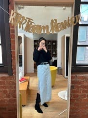 I really liked this skirt - the weight was perfect for spring, it wasnt too long on me (lots of things are), and the light denim was perfect. I think the 26 is the right fit for me but is was still a little looser than I like around the waist (I prefer a higher waist fit for jean skirts). I also tried on the 27 (my normal jeans size is 27 or 4) and it was too big in the waist, or at least too big to wear high waisted in the way I wanted it to fit. [Note: this is a team RTR review, I am an employee]