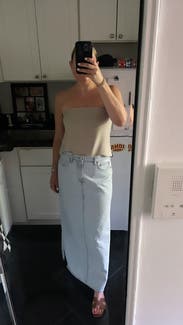 Having slits on both sides of your legs made the skirt flap when walking so not the most elegant look. Denim was soft-ish so comfy around waist and hips but this wasn't best fit for short ladies.