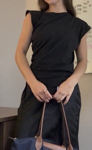 Wore this several times, both to work and casual events. Very easy to style and a great twist on a classic black tee.