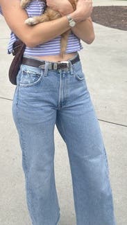 Contrary to reviews, I found these to run big for Agolde. Wish I’d stuck with my usual size but still a very cute baggy barrel style.