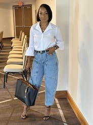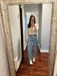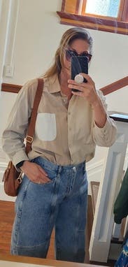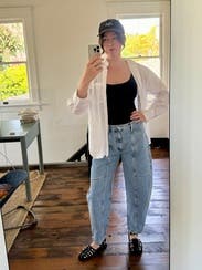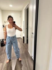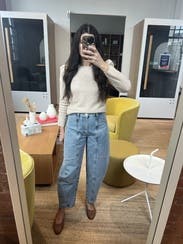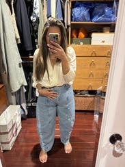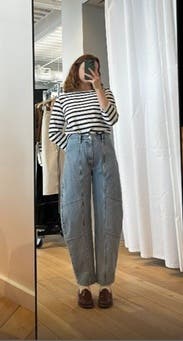 Never thought I’d like barrel jeans until I tried these! Loved them so much, I ended up buying them! They make any outfit look interesting. I’m also short, so not having to hem these was a no brainer on the purchase!