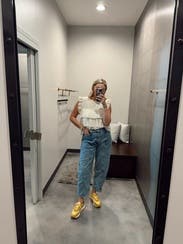 I LOVED these! They were so fun and flattering, and fit perfectly. I wore them several times a week and kept them for an extra month. I'm honestly sad to send them back, if it weren't already getting too hot for jeans I might have even kept them for a third rental cycle.