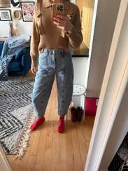 These jeans were perfect to rent and I’ve worn them a bunch of times. The barrel style isn’t worth buying IMO, but I loved renting! The quality is great and these fit well with my curvy hips and smaller waist.