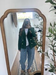 Got so many compliments on these amazing jeans. The waist was too big for me which is common but didn’t want to take the risk of the butt area being too tight. Could’ve sized down. But these are a perfect statement piece for brunch, a casual work environment or fall day date!