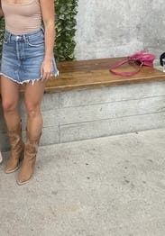 This jean short fit perfectly in the waist bit was super short. Wouldn’t personally recommend sizing up (I tried that and it was too big), rather just know it’ll be a short one.