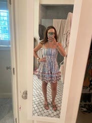 This is such a cute and fun sundress. I didn’t need a bra because the top is tight enough and textured. The ruffles on the bottom and the colors are perfect for spring and summer. The detail on the straps is adorable as well. I just felt cute and fun and flirty. I wore it out on a boat with friends and for dinner and cocktails after but it would be great for a lot of different occasions!