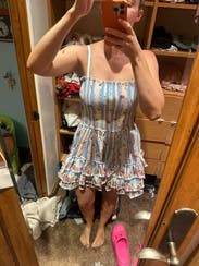 Wore this on a day hanging out at the beer garden. Super comfortable because of the smocking on top, didn’t need to wear a bra, adjustable straps. Fun summery dress, no complaints!