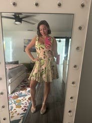 Loved this one of a kind adorable and very comfortable floral dress! TTS, petite friendly, and looked stunning both standing and in my wheelchair for the Air Show. 💚💕 Cannot recommend enough! Received endless compliments, including an ask to have pictures with the planes by the owners, which made my day! 🥰Obsessed with the gorgeously timeless design, cut, and fit of this dress-would be so perfect day to night, or could be dressed up with a blazer for work. A Must-Rent!