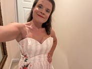 Adored the corseted fitted top, design, and comfortable fabric-perfect for a cooler late summer event! The gorgeous fabric, colors, and florals are unforgettable and I received the most meaningful compliments! The dress looks stunning sitting and standing, perfect for my dynamic disability, and gave me tremendous confidence meeting all our new family at the wedding! 💕 TTS, a bit small in the corseted chest-perfect for petite ladies like moi. I also had to wear heels to make up for the 1-2in extra length, but not noticeable sitting so excellent wheelchair dress choice! ❤️🫶🏼🥰