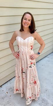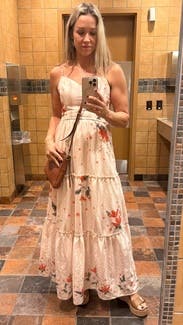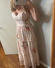 I rented this dreamy floral maxi dress for a cruise and couldn’t have been happier with the look and feel! The fabric is light and breathable—perfect for warm, tropical weather—and the tiered design adds such a romantic, flowy vibe. I especially loved the subtle floral embroidery, which gave it a delicate, elevated touch. The fit was true to size, flattering through the bodice without being too tight, and the length was ideal with flat sandals. I received tons of compliments and felt effortlessly stylish all day. Highly recommend this dress for vacations, garden parties, or any warm-weather event!